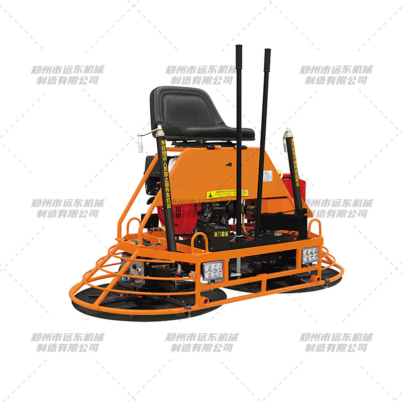 适合大小施工场地,可进行室内室外抹平操作。适用于高标准厂房、仓库、广场、机场、停车场、路面、路桥养护、混凝土表面的提浆、抹平、是混凝土施工中重要设备之一。 驾驶型混凝土地面汽油抹光机的使用很大程度上降低了劳动强度,提高了工作效率,具有双盘,重量大,对地面具有较好的压实效果,施工效果明显高于其它施工机器,可同时安装两张提浆圆盘,进行快速提浆,机械式转向操作系统,反应灵敏,控制轻松自如。