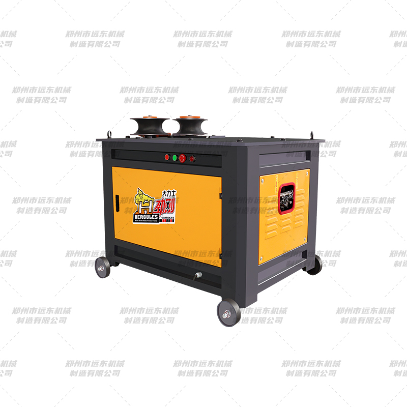 本机采用双主动轮传动结构,一次成型,液压装置,进行弧度调节,操作简单,使用方便,弧度准确,效率高。工作轮采用高钢性材质,坚固耐用 变速箱齿轮材质为高钢性材质,使用寿命长久,可进行弧度渐变的钢筋加工